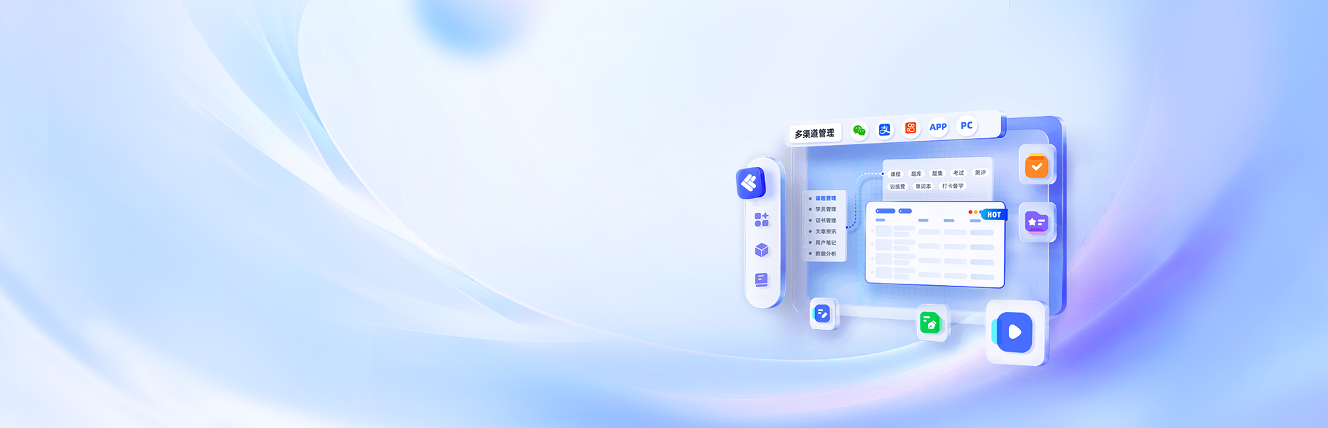 涵盖课程管理、培训管控、考核测评等核心功能,同步统计数据,高效完成内部人员系统化培训与能力提升