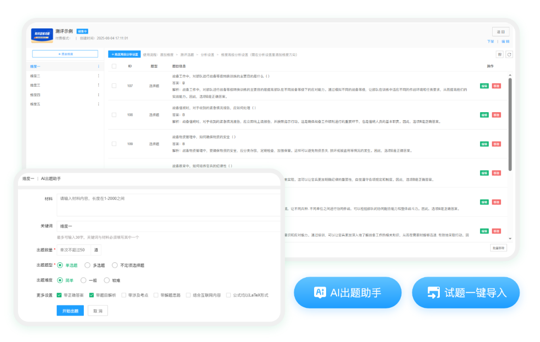 支持按需设置测评时长、及格标准等核心参数,无需专业技术,简单操作即可匹配不同测评目标,不局限特定使用场景