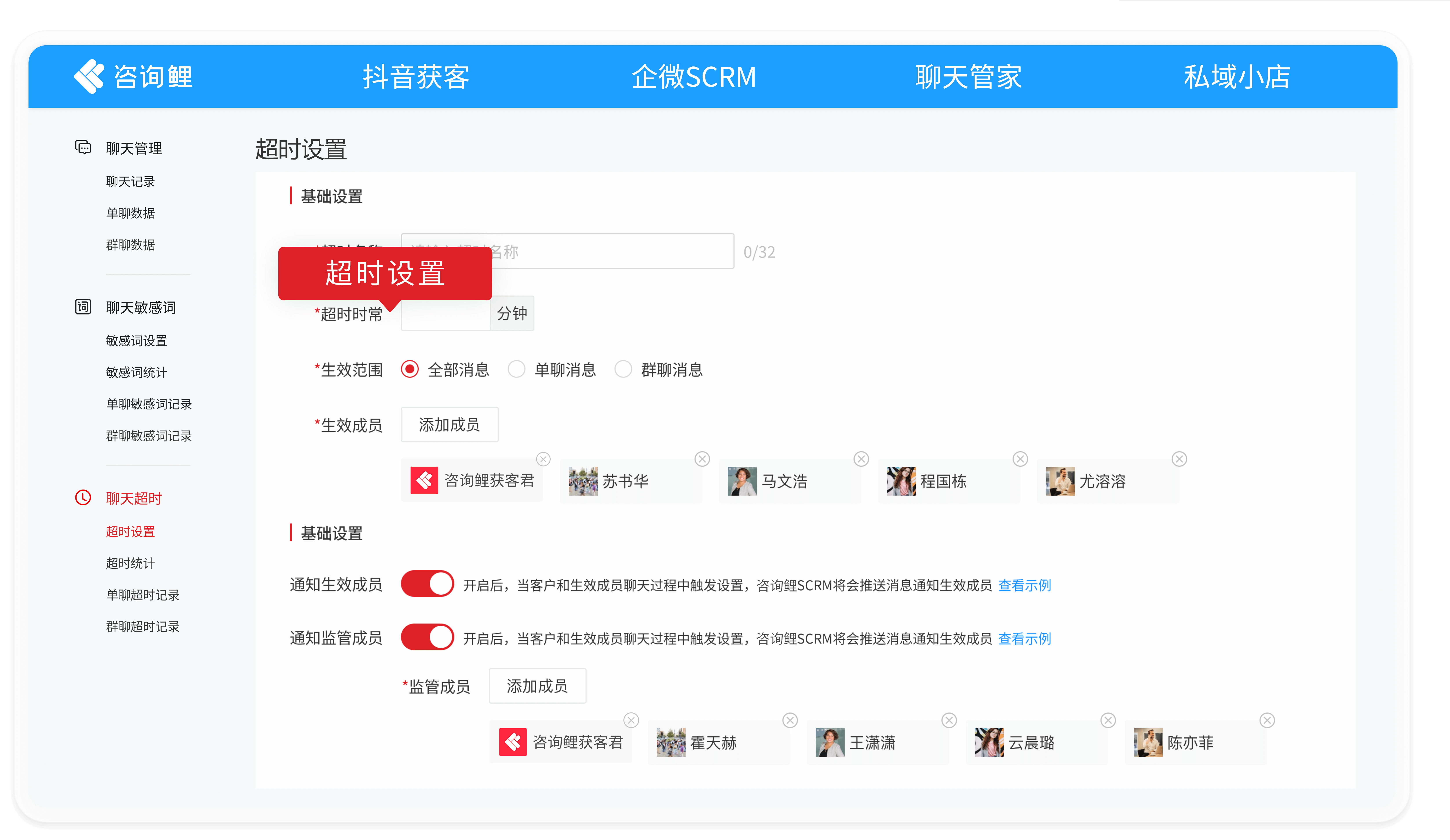 聊天超时提醒,提升客户服务及时性,客户跟进更规范!