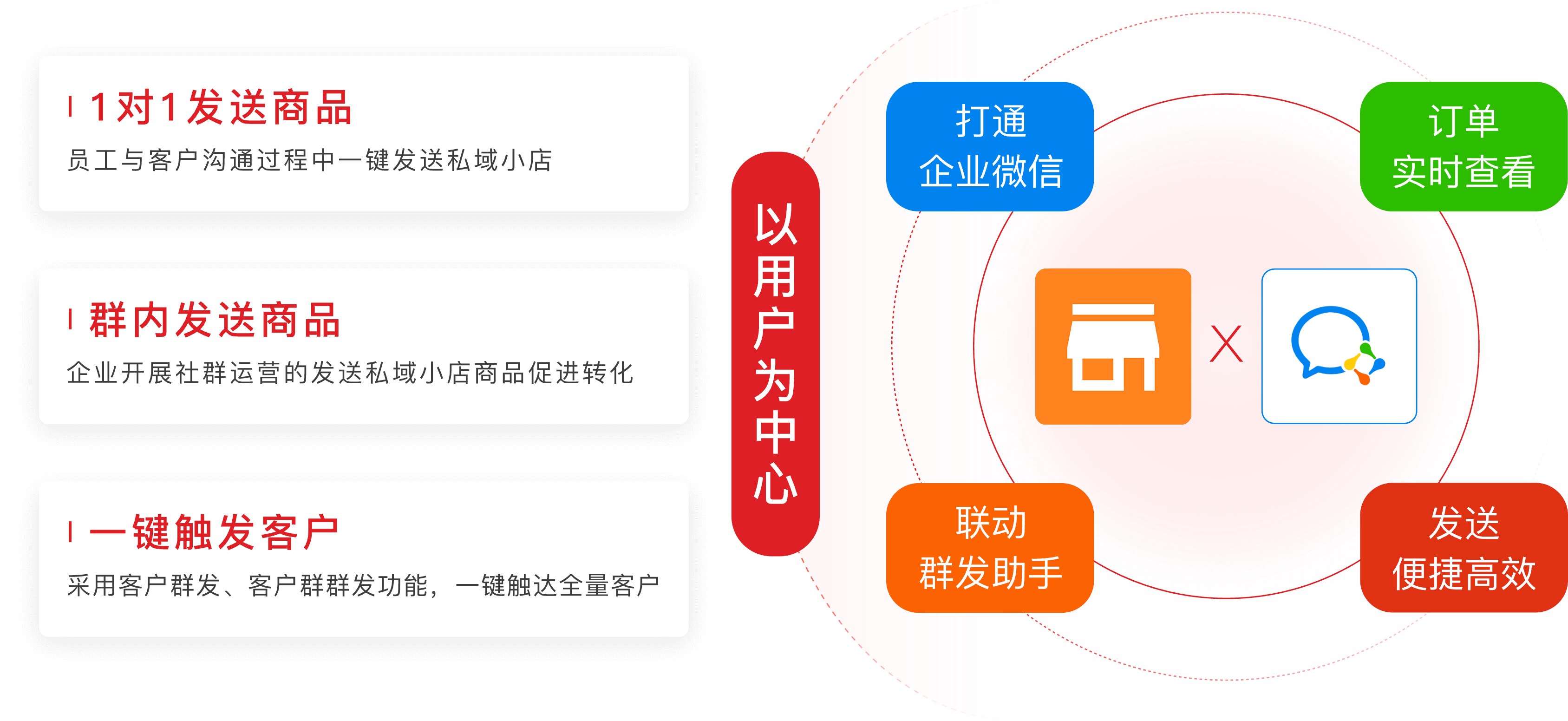 一键触达私域、好友关系1v1、社群关系1v多,高效率成交转化