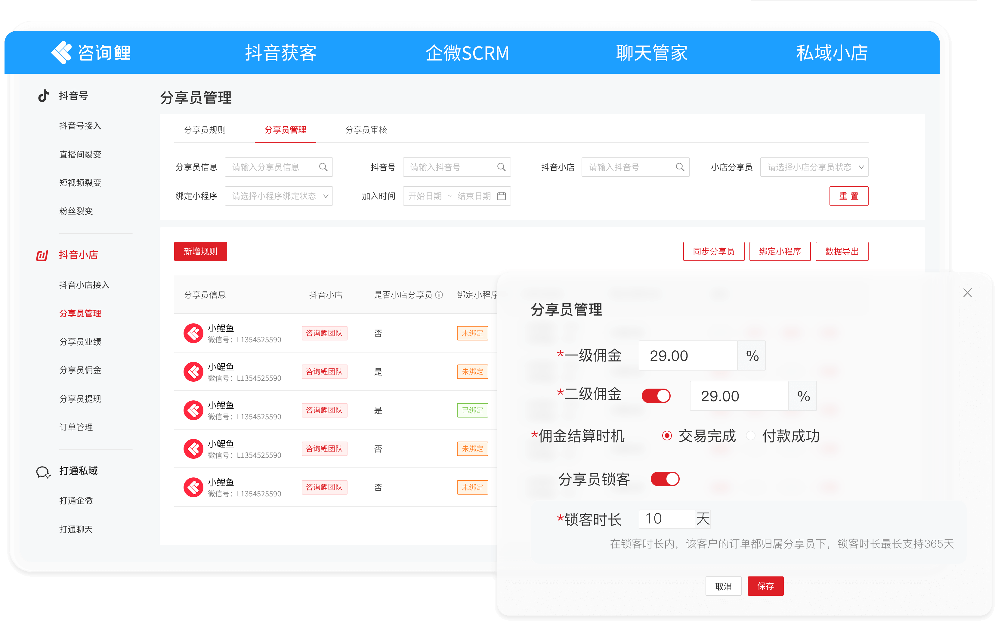 咨询鲤,可一键接入抖音、快手直播和短视频,统一管理