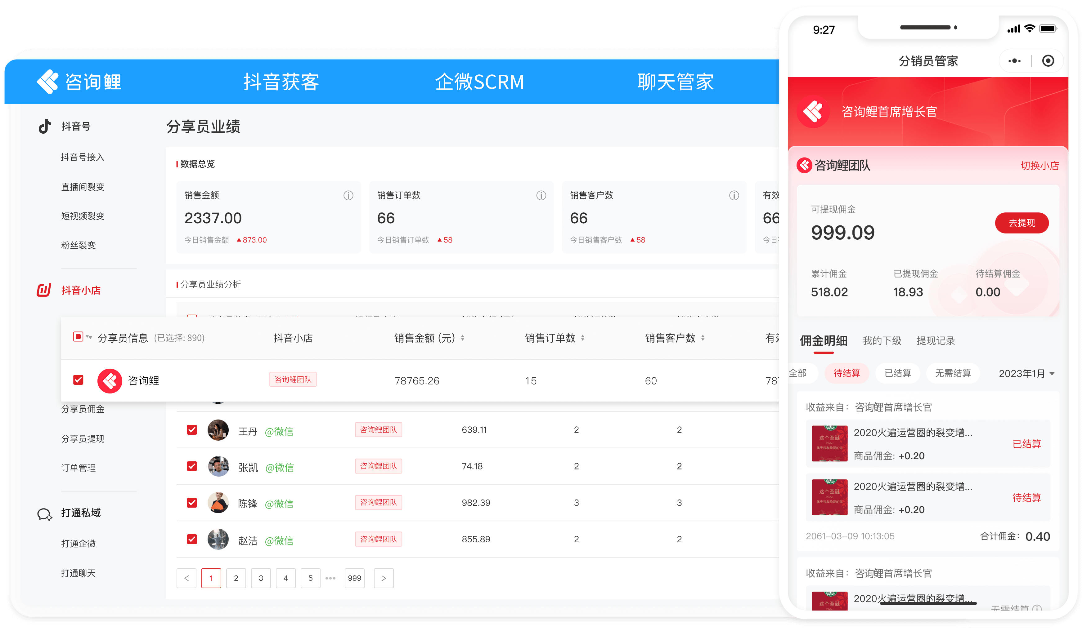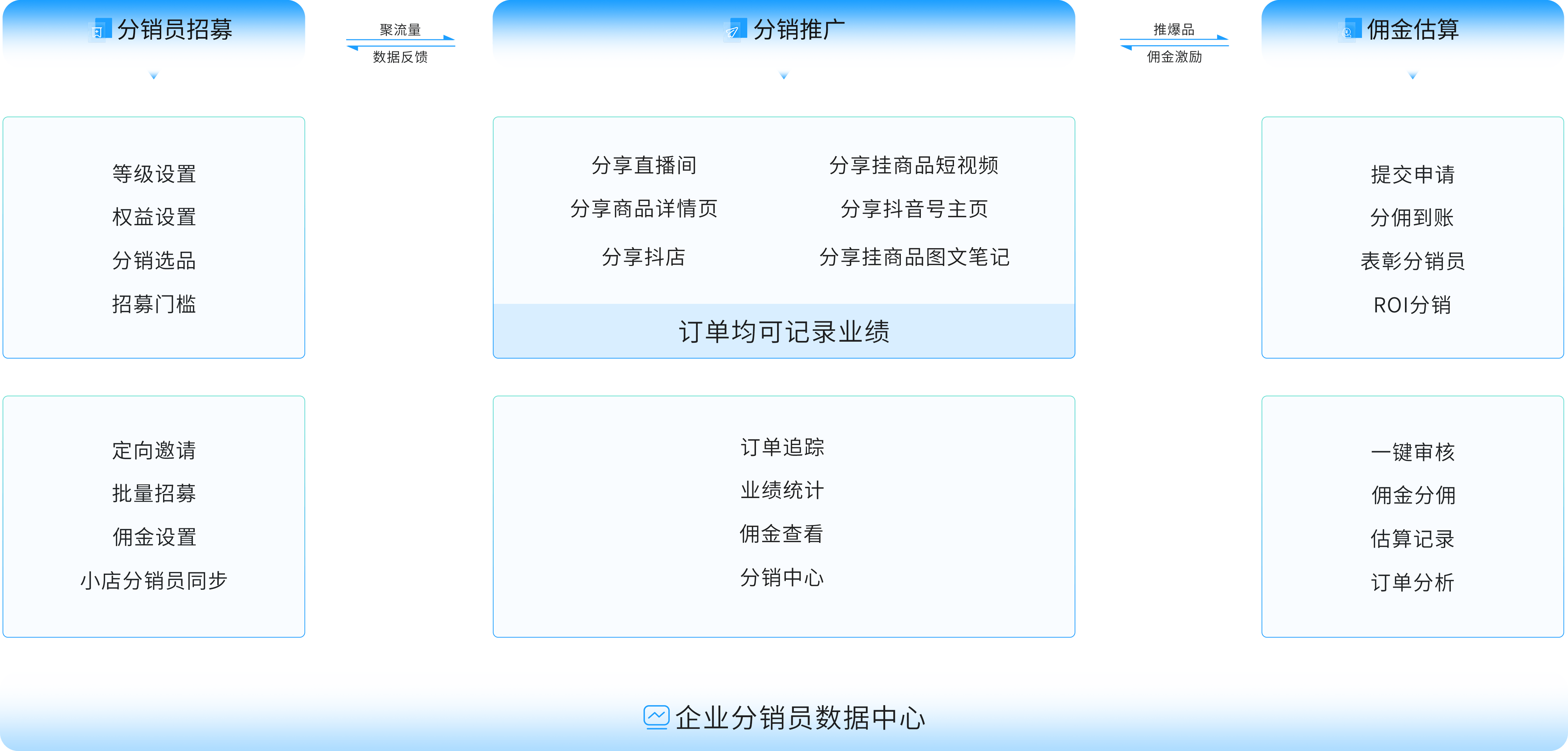 基于抖音运营体系,打造分享员招募、分销推广、佣金结算闭环