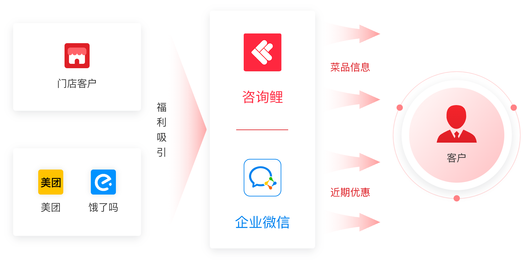 将门店、外卖流量导入私域,客户离店后,依然用福利活动和菜品信息反复触达客户,提升客户粘性