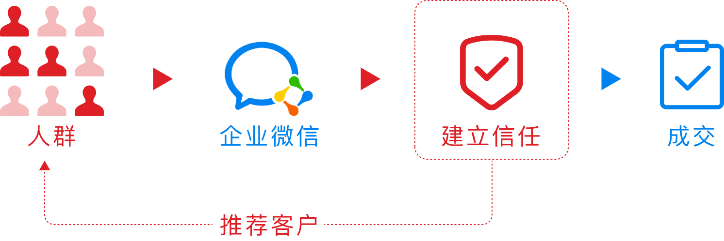 用企业微信打造专业IP形象,企业认证标识打消客户疑虑。再通过高频的私域触达,扫除客户知识盲区,提高客户信任感