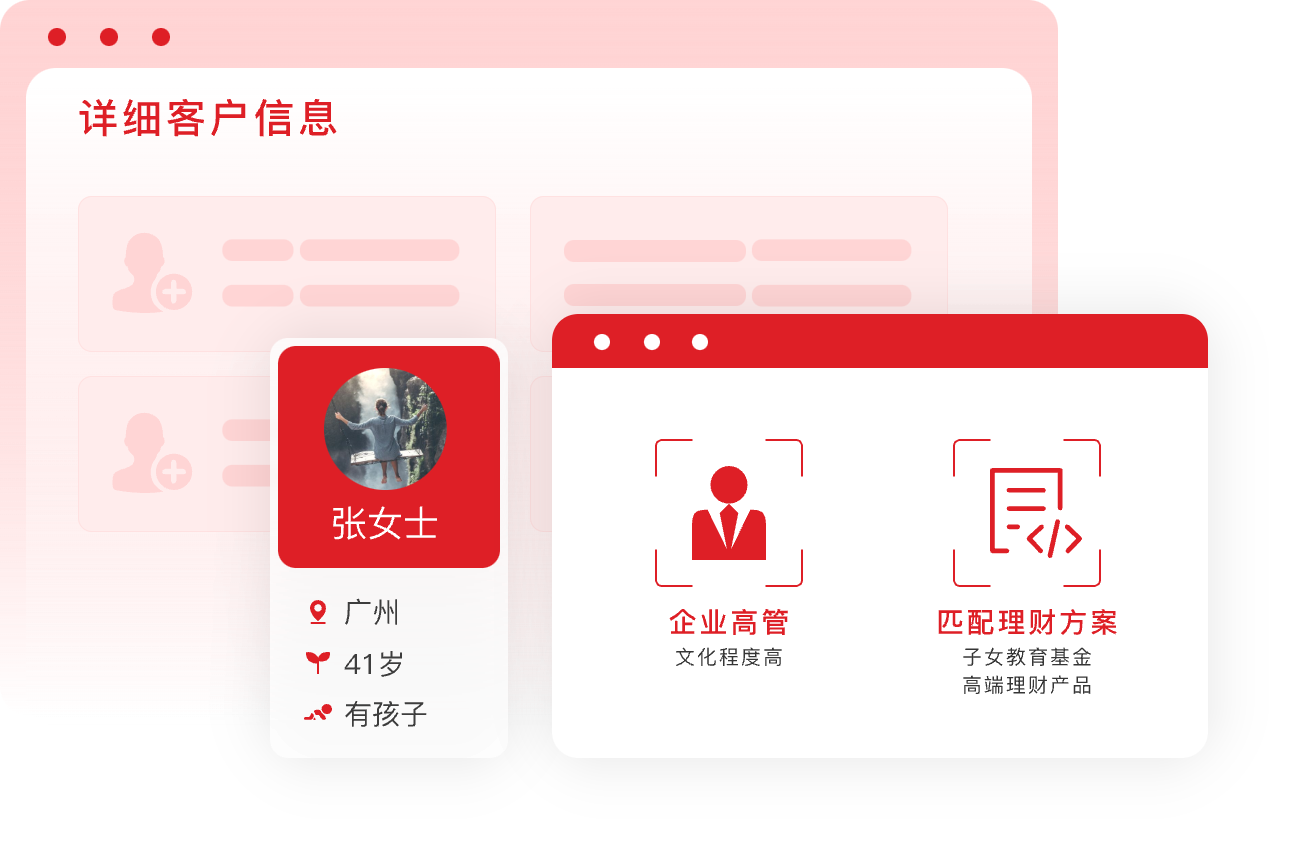 一键查询客户信息、客户画像、客户生命周期信息,客户管理更便捷、高效在职继承、离职继承功能,保障客户资产稳定不流失